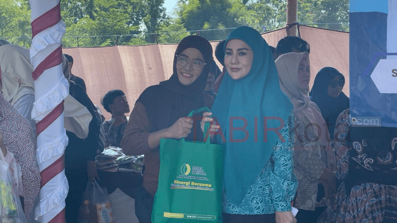 BARABAI (TABIRKota) – Ketua Tim Penggerak Pemberdayaan Kesejahteraan Keluarga (TP PKK) Kabupaten Hulu Sungai Tengah (HST), Kalimantan Selatan (Kalsel), Deni Era Yulyantie membagikan bingkisan di tengah warga yang menyerbu pasar murah, di Lapangan Dwi Warna Barabai, Kamis (16/10).