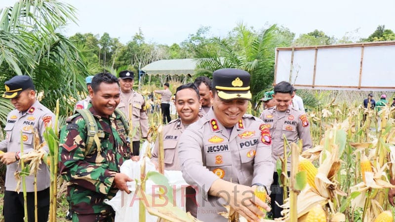 BUNTOK (TABIRkota) – Dalam rangka mendukung Asta Cita Presiden RI di bidang ketahanan pangan, Kepala Kepolisian Resor (Kapolres) Barito Selatan (Barsel), Kalimantan Tengah (Kalteng), AKBP Jecson Ricsko Hutapea panen jagung di lahan Tumpang Sari Kebun Kemitraan Polres Barsel, Desa Sababilah, Kecamatan Dusun Selatan, Selasa (11/11).