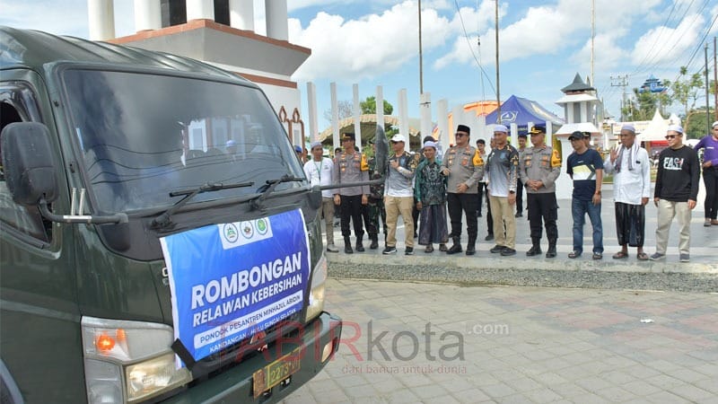 Pelepasan para relawan dari Pondok Pesantrren (Ponpes) Minhajul Abidin tersebut, dilakukan Sekretaris Daerah (Sekda) HSS, Muhammad Noor mewakili Bupati setempat, H Syafrudin Noor di kawasan Islamic Center, Kandangan, Jumat (26/12).