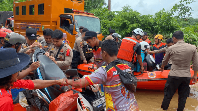 Personel gabungan Polres HST, Polres Balangan serta TNI dan relawan bekerja bahu-membahu di lapangan, memastikan bantuan tepat sasaran.