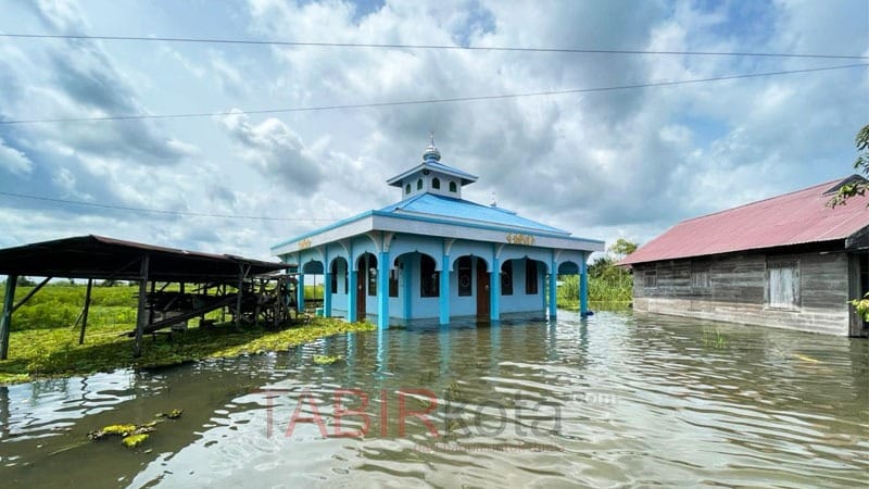 TERENDAM HENING (BARABAI, TABIRkota) – Sebuah mushola atau langgar di Desa Kayu Rabah, Kecamatan Pandawan, Kabupaten Hulu Sungai Tengah (HST), Kalimantan Selatan (Kalsel) berdiri dalam hening ditengah kepungan banjir yang melanda kawasan setempat sejak akhir 2025 lalu. Hingga saat ini, banjir di Kayu Rabah dan beberapa desa lainnya di HST, belum juga surut. (foto: TABIRkota/m ferian sadikin)