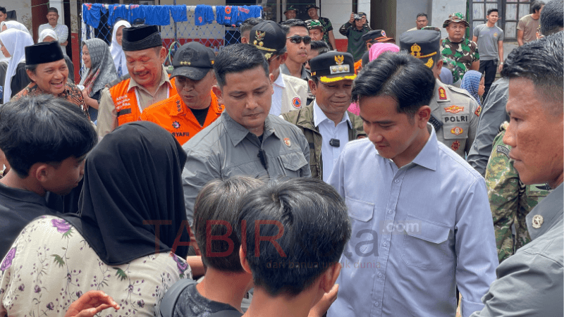WAPRES GIBRAN SAPA WARGA (PARINGIN, TABIRkota) — Wakil Presiden Republik Indonesia (Wapres RI), Gibran Rakabuming Raka menyapa warga saat mengunjungi korban terdampak banjir bandang di Desa Juuh, Kecamatan Tebing Tinggi, Kabupten Balangan, Kalimantan Selatan (Kalsel), Kamis (8/1). (foto: TABIRkota/ferian sadikin)