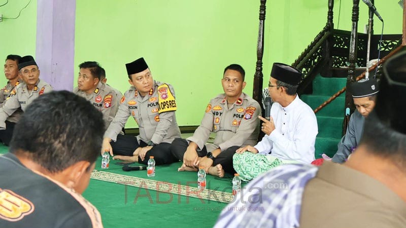 BUNTOK (TABIRkota) – Kepala Kepolisian Resor (Kapolres) Barito Selatan (Barsel), Kalimantan Tengah (Kalteng), AKBP Jecson R Hutapea menggelar kegiatan Jumat Curhat bersama jemaah Masjid Darul Mutaqin di Desa Tabak Kanilan, Kecamatan Gunung Awai, Jumat (6/2).
