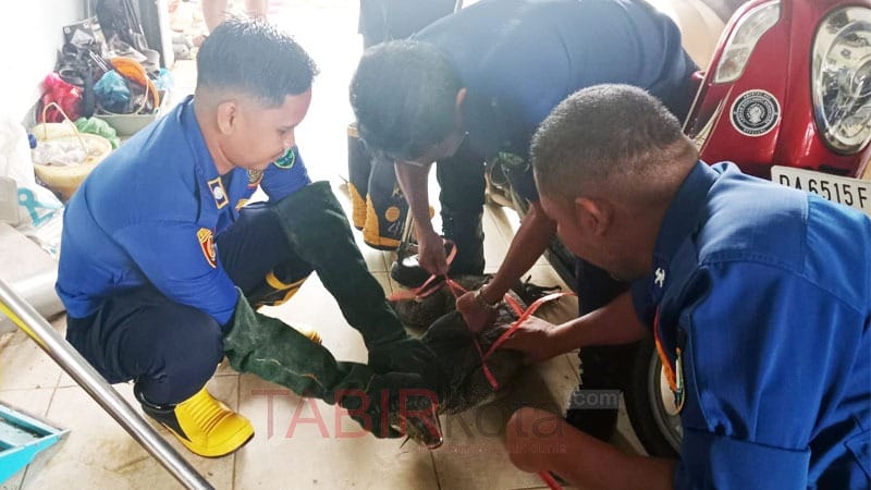 “Proses evakuasi berlangsung hati-hati oleh beberapa petugas Damkar, karena Biawak tersebut cukup sulit untuk ditangkap,” katanya.