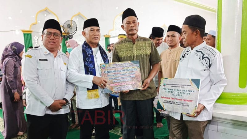 KOTABARU (TABIRkota) – Bupati Kotabaru, Kalimantan Selatan (Kalsel), Muhammad Rusli memaparkan sejumlah program prioritas daerah saat Safari Ramadan 1447 Hijriah di Masjid Al Anshar, Desa Tanjung Seloka, Kecamatan Pulau Laut Selatan, Arba (25/2).