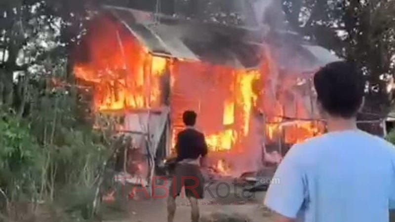 BUNTOK (TABIRkota) – Satu rumah di kawasan Kamper Ujung, Buntok, Kecamatan Dusun Selatan, Kabupaten Barito Selatan (Barsel), Kalimantan Tengah (Kalteng), hangus terbakar akibat amukan si jago merah saat menjelang waktu berbuka puasa, Jumat (20/2) sore.