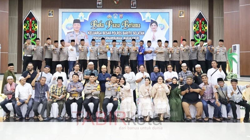 BUNTOK (TABIRkota) – Keluarga besar Kepolisian Resor (Polres) Barito Selatan (Barsel), Polda Kalimantan Tengah (Kalteng), menggelar kegiatan buka puasa bersama dengan wartawan, purnawirawan, warakawuri serta relawan Satuan Pelayanan Pemenuhan Gizi (SPPG) Kemala Presisi di Aula Tantya Sudhirajati Polres setempat, Sabtu (15/3).