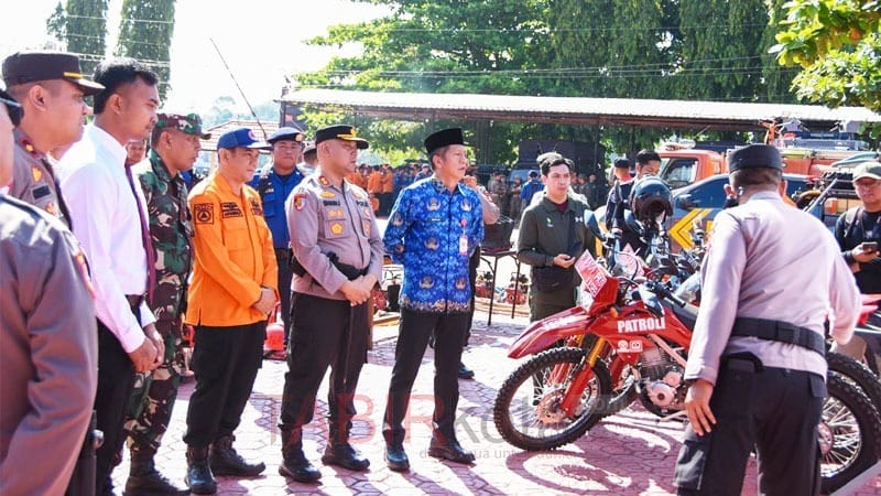 Sekda Barut, Muhlis bersama Kapolres Barut, AKBP Singgih Febiyanto melakukan pemeriksaan kesiapan sarpras penanggulangan bencana karhutla (foto: TABIRkota/ist)